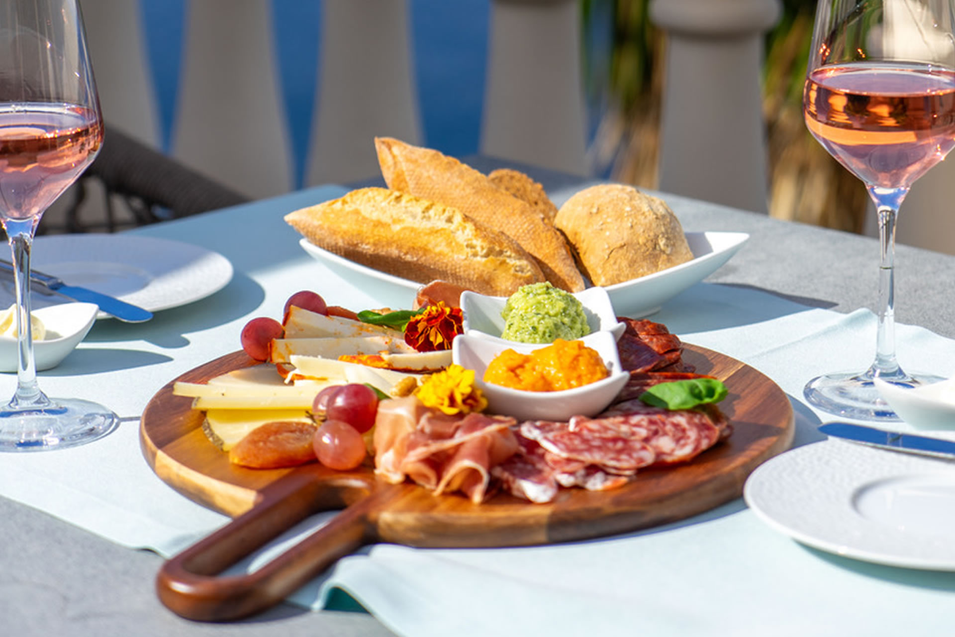 Für einen entspannten Abend in Ihrer Suite haben wir eine Auswahl spanischer Käsesorten und Wurstwaren zusammengestellt, die Sie mit einem Glas Wein genießen können. Perfekt für einen lauen Abend mit Meerblick, fernab vom Trubel, und mit köstlichen, typischen Spezialitäten als leichten Snack. Bitte bestellen Sie einen Tag im Voraus für 12,50 EUR pro Person. Wir empfehlen den Roséwein Rosado de Lagrima von der Nachbarinsel Lanzarote für 24 EUR pro Flasche.